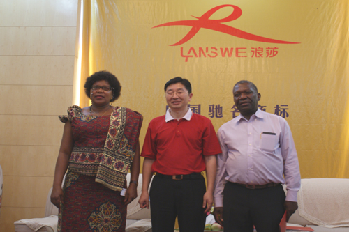 坦桑尼亞工貿(mào)部常務(wù)秘書(shū)長(zhǎng)喬伊斯、貿(mào)易發(fā)展局總干事哈希姆?哈勒凡與董事長(zhǎng)合影