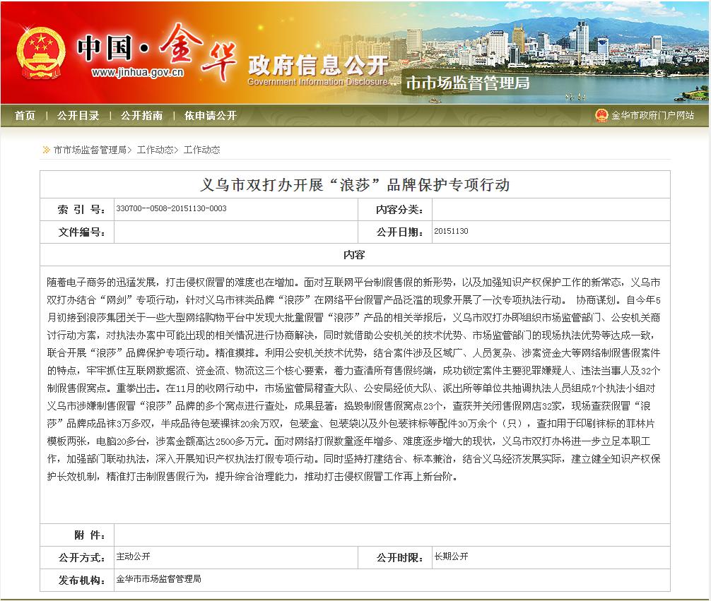 義烏市雙打辦開展“浪莎”品牌保護專項行動