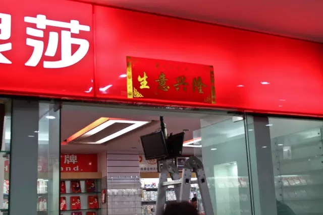 圖為浪莎員工正在手忙腳亂的貼剛剛從市委書記手中領(lǐng)到的春聯(lián):