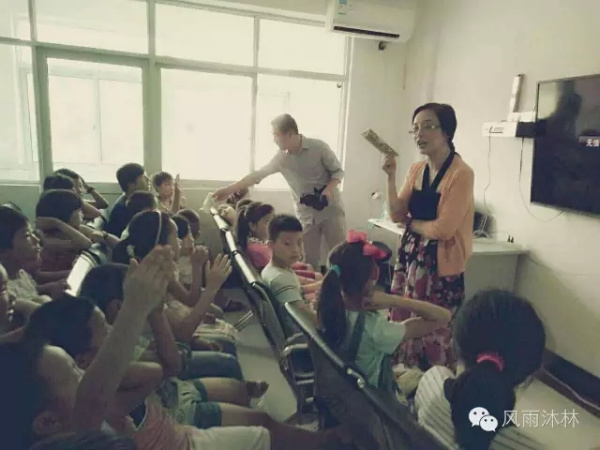 當翁總裁和陳書記來到暑期活動室,小朋友們正在興致勃勃地看動畫片。黨員干部的到來引起了小朋友們的注意,看到翁總裁和陳書記一行的到來,小朋友們很是開心。