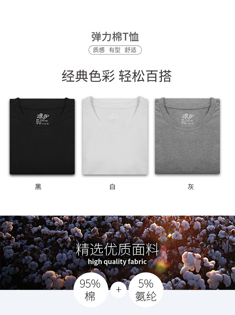 2件浪莎透氣春夏簡約男士彈力棉圓領運動T恤領休閑短袖