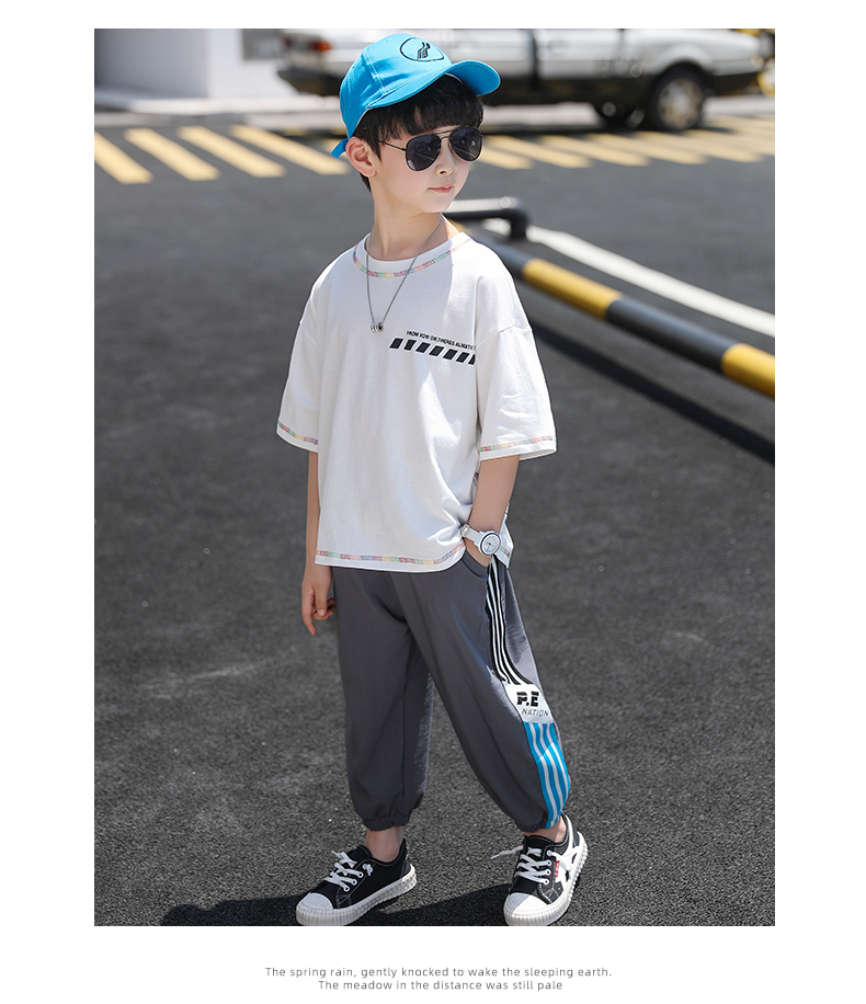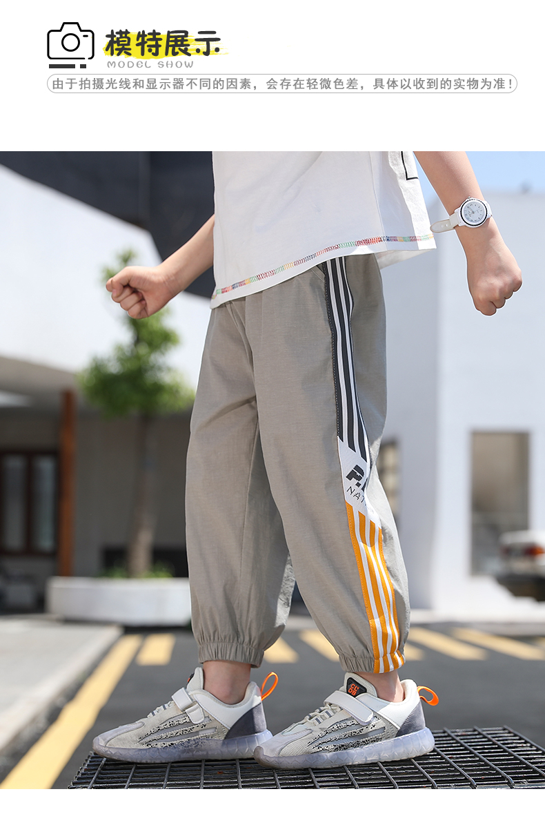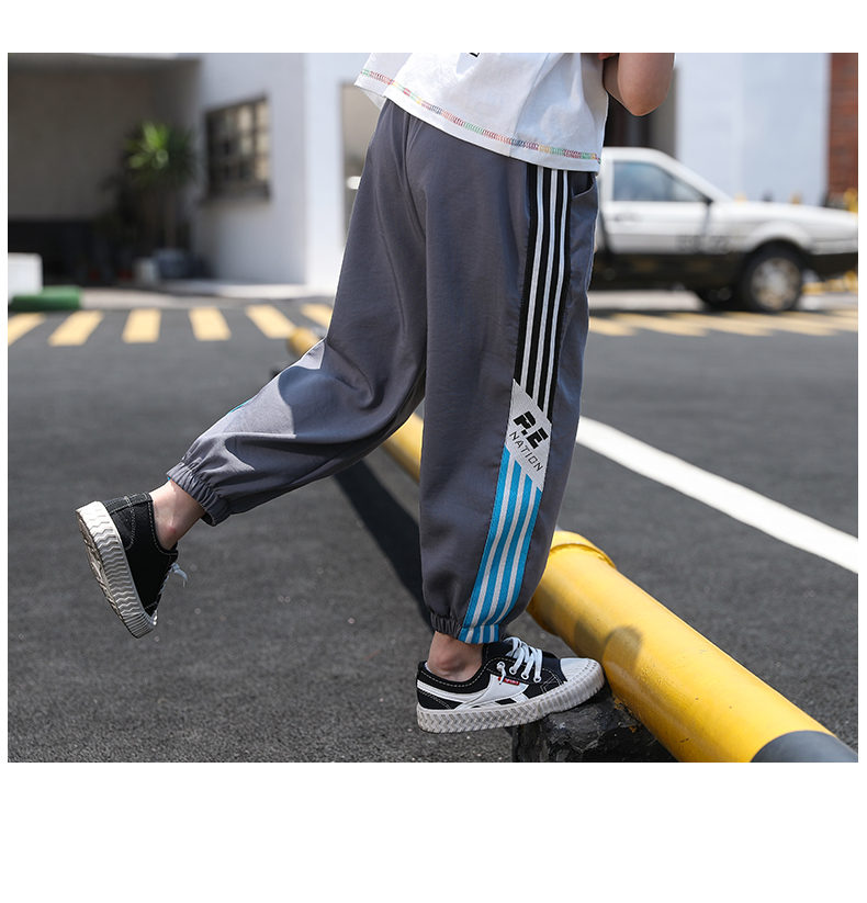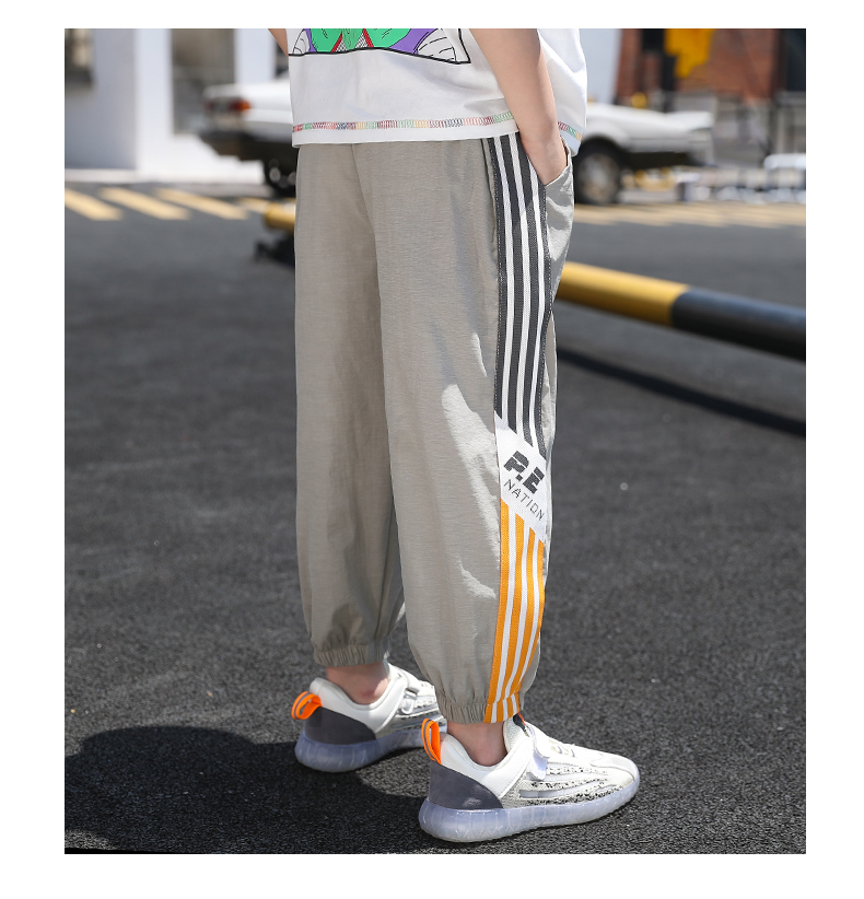 浪莎男童褲子運動長褲子兒童裝2021新款夏裝洋氣中大童百搭束腳褲