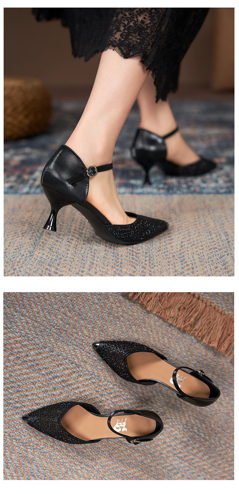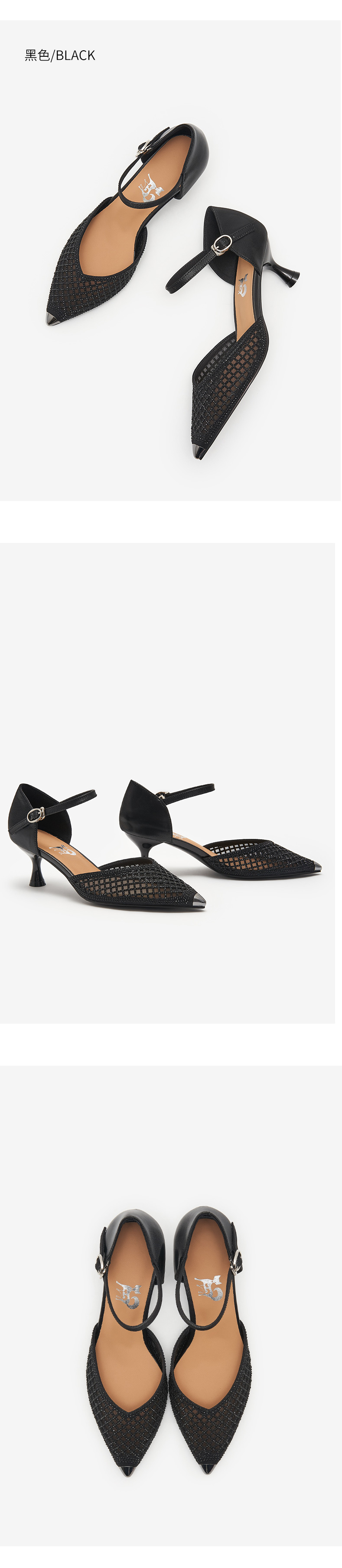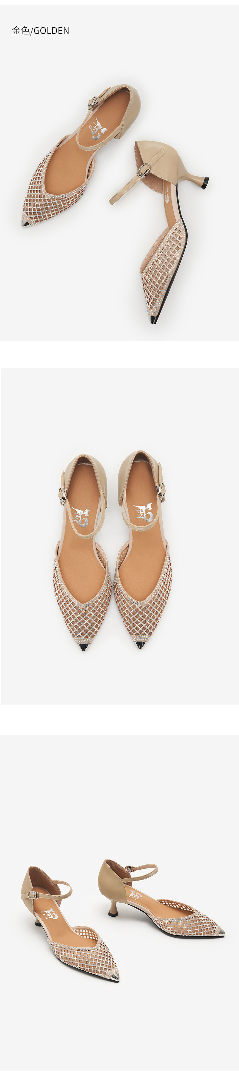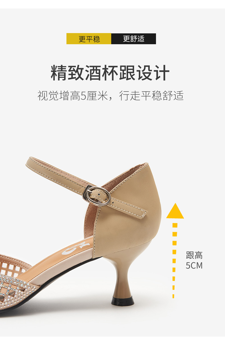 細跟包頭涼鞋女2021年新款夏中跟單鞋帶鉆鏤空網紗一字帶羅馬涼鞋