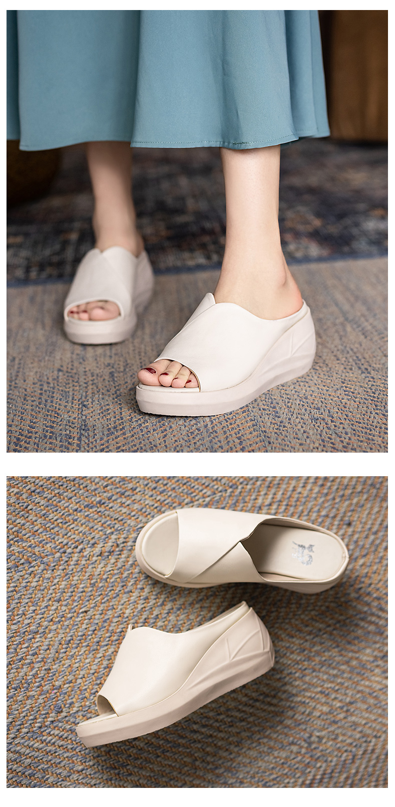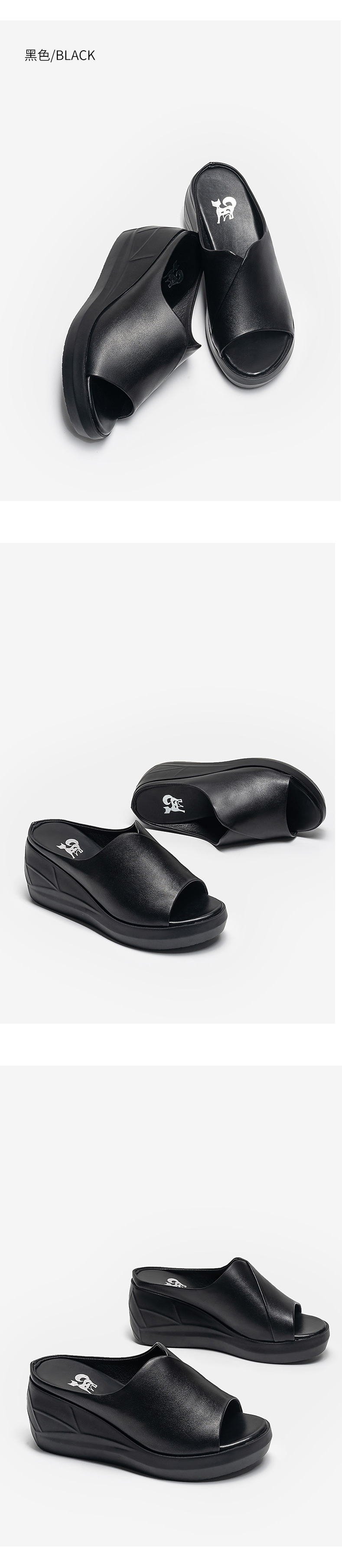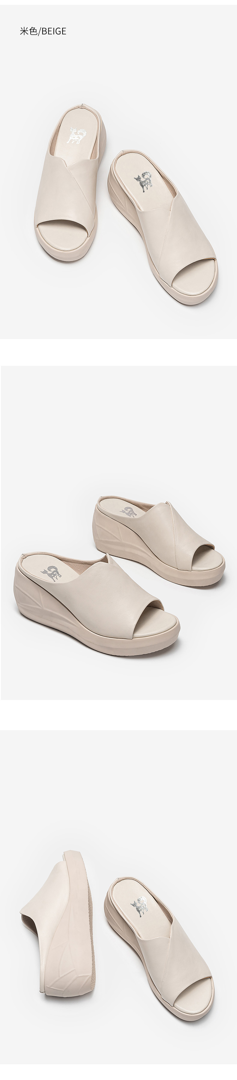 浪莎坡跟涼拖女外穿2021春新款夏天時尚高跟真皮懶人厚底魚嘴拖鞋