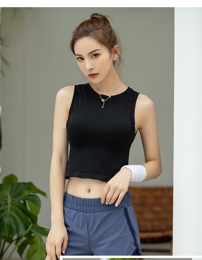 浪莎運動背心女緊身露臍無袖跑步瑜伽服上衣罩衫薄款健身速干T恤