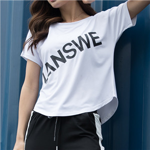 浪莎運動短袖T恤女大碼寬松健身服跑步白色春夏速干上衣瑜伽半袖