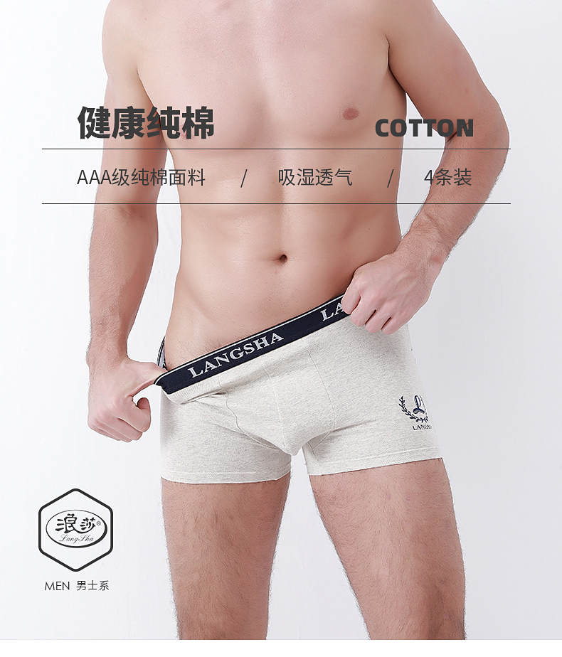 浪莎內(nèi)褲男純棉平角褲春夏透氣薄款男士中腰全棉商務(wù)青年四角短褲